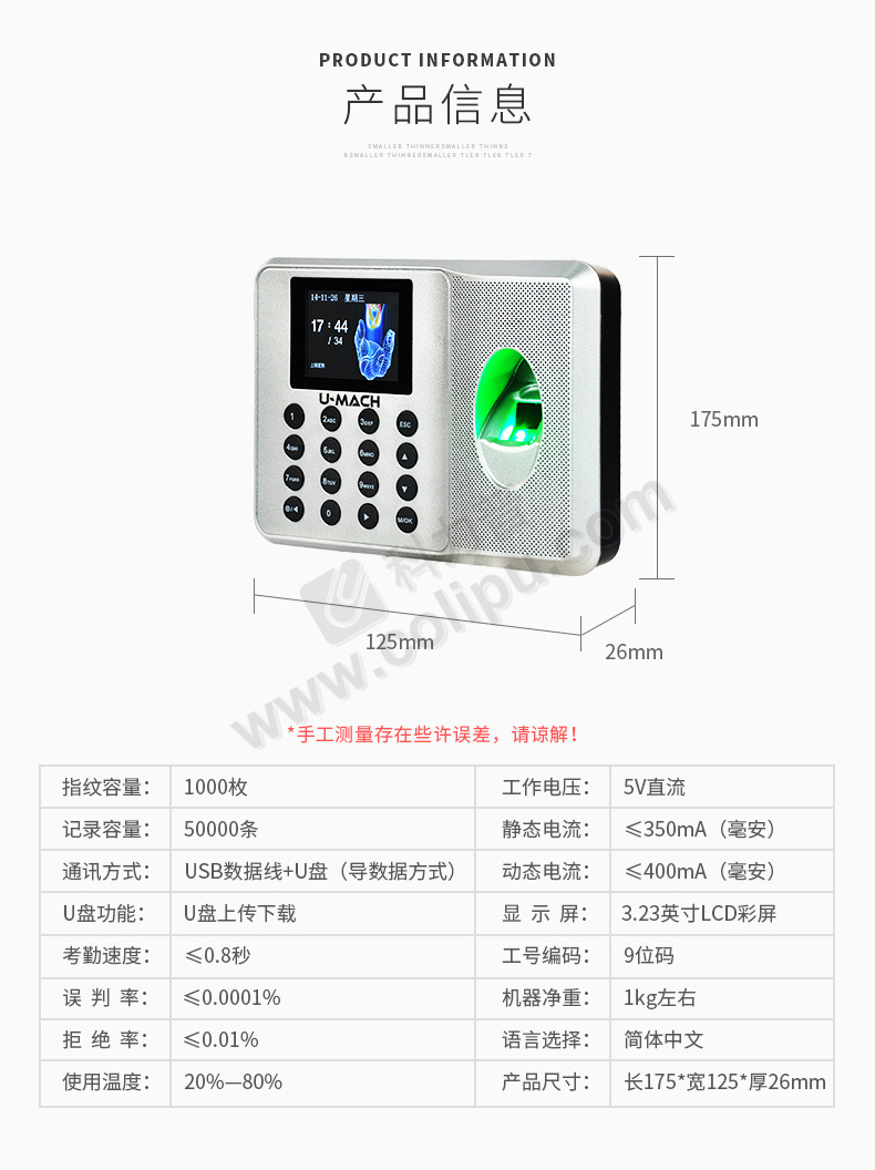 优玛仕 U-mach 指纹考勤机 U-Z32