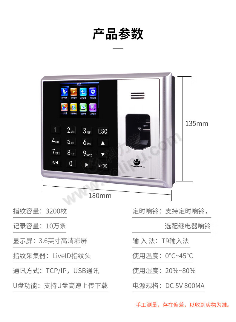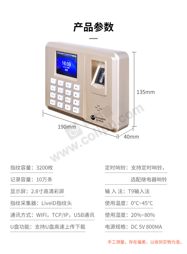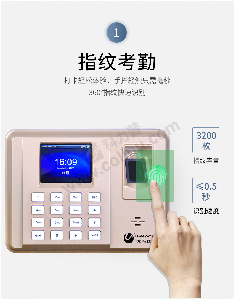 优玛仕 U-mach 指纹考勤机 U-Z20W (不含安装服务)
