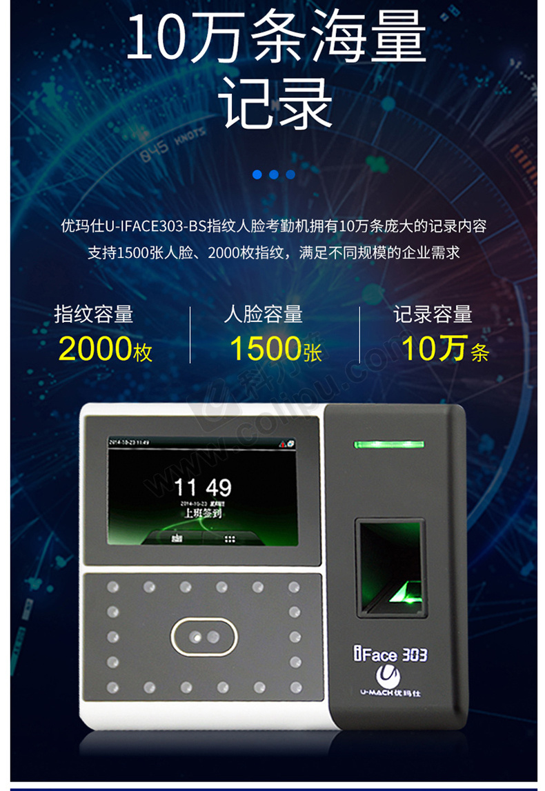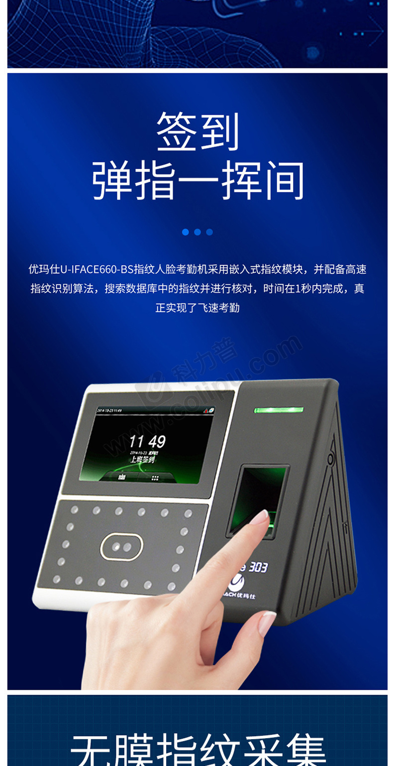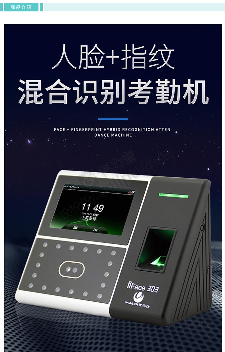 优玛仕 U-mach 人脸指纹异地考勤机 U-iFace303-BS (配套异地考勤软件使用)