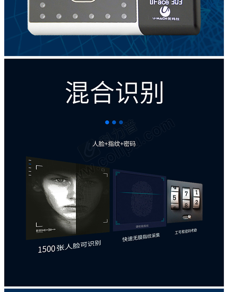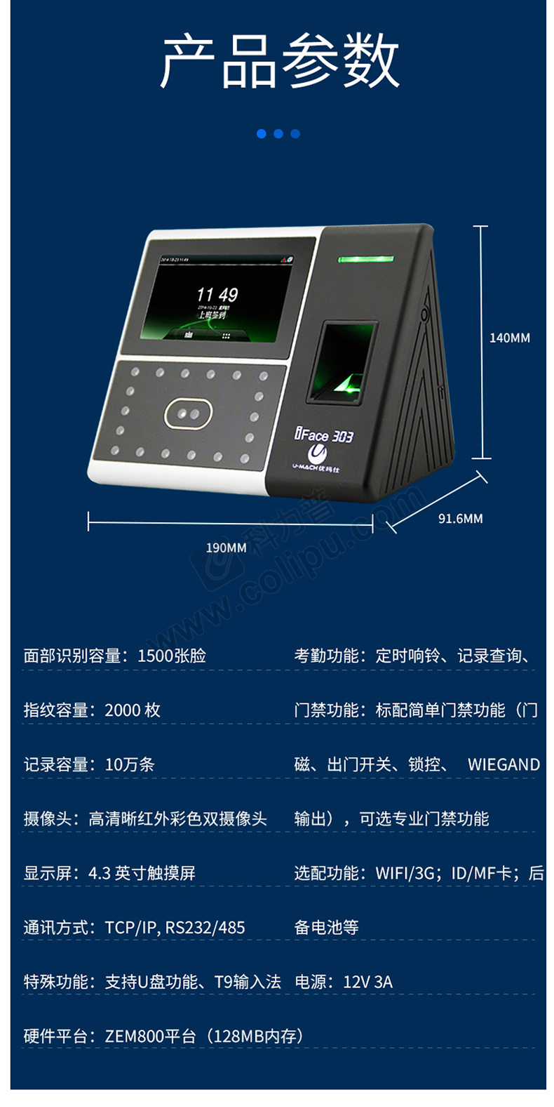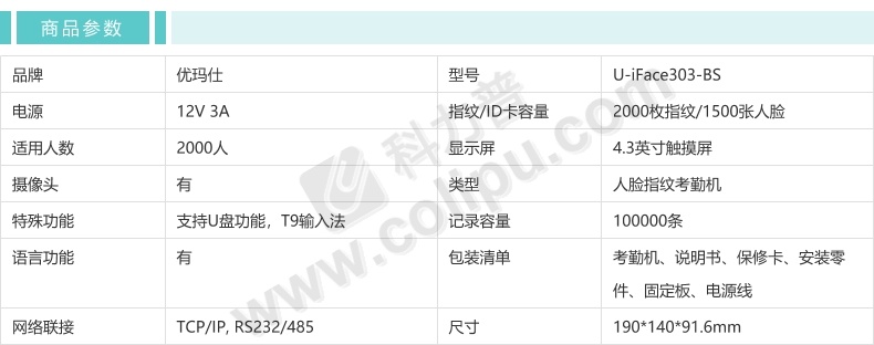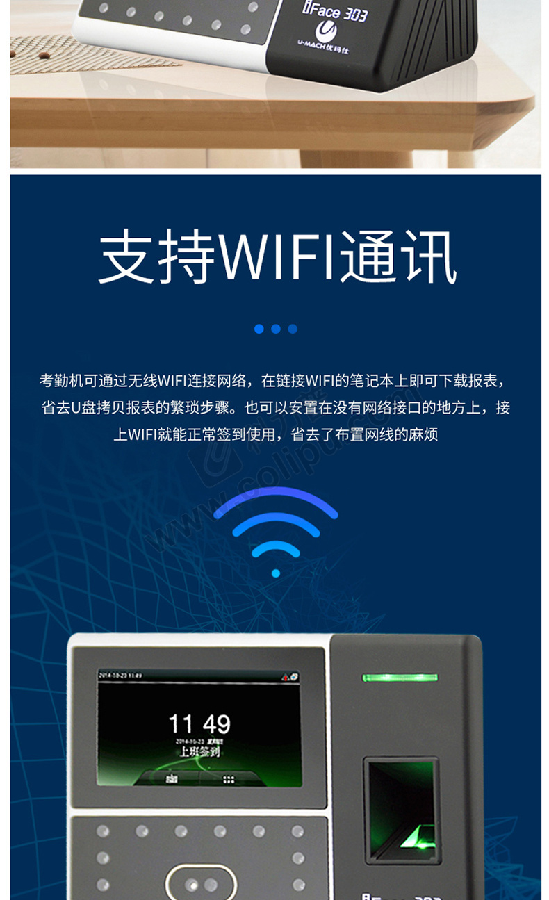 优玛仕 U-mach 人脸指纹异地考勤机 U-iFace303-BS (配套异地考勤软件使用)