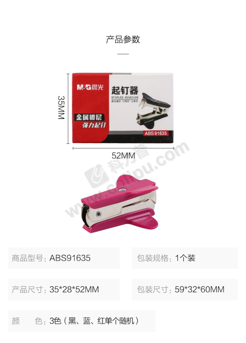 晨光 M&G 起钉器 ABS91635 52mm (红色、蓝色、黑色(颜色随机)) 24/6(12*6) 35×28×52 金属不锈钢