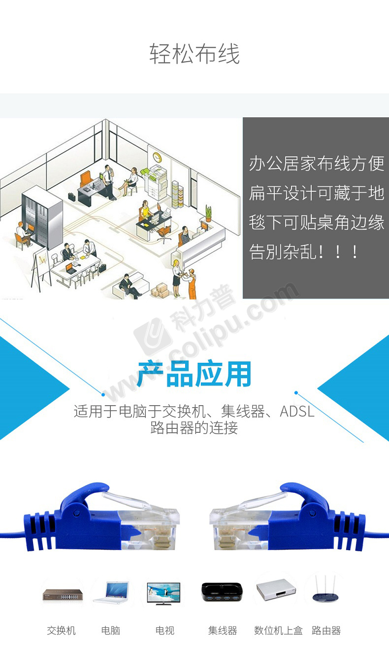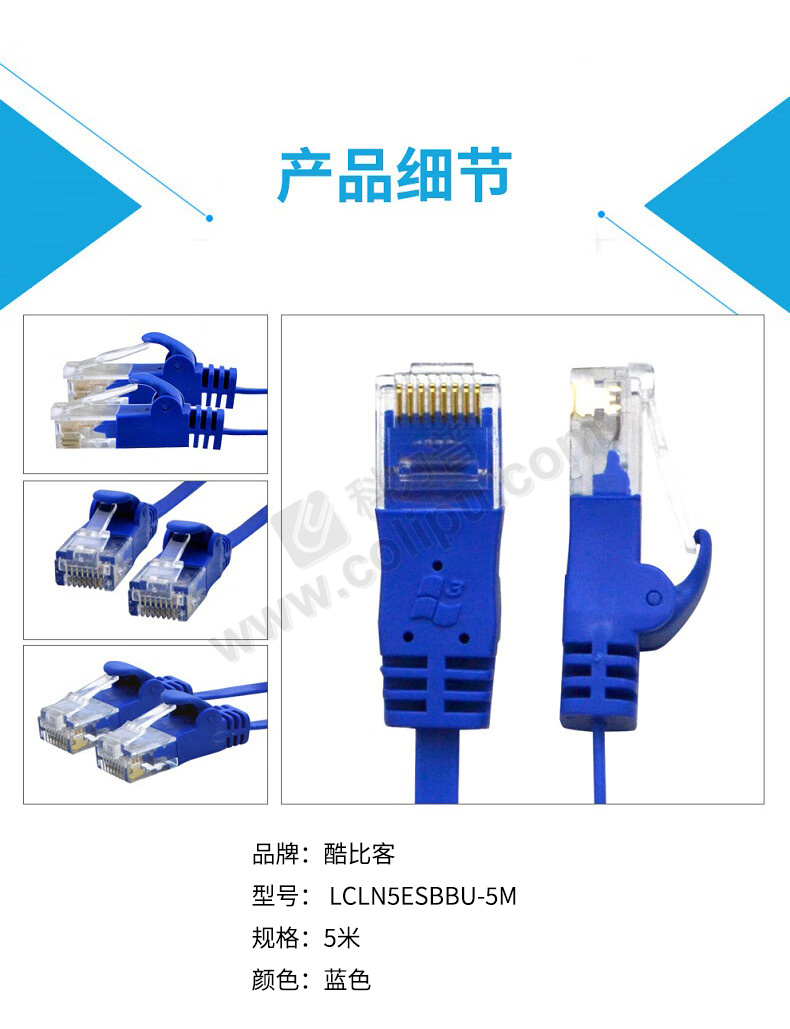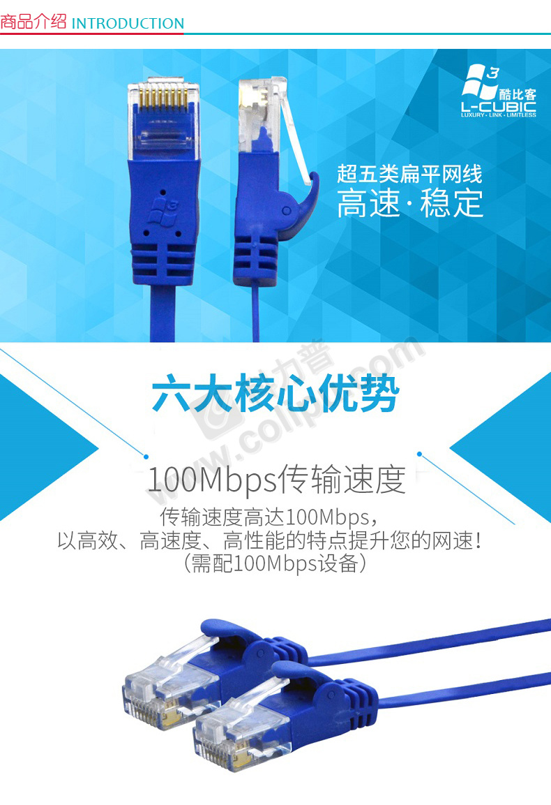 酷比客 L-CUBIC 超五类百兆网线 扁线 LCLN5ESBBU-5M 5米 (蓝色)