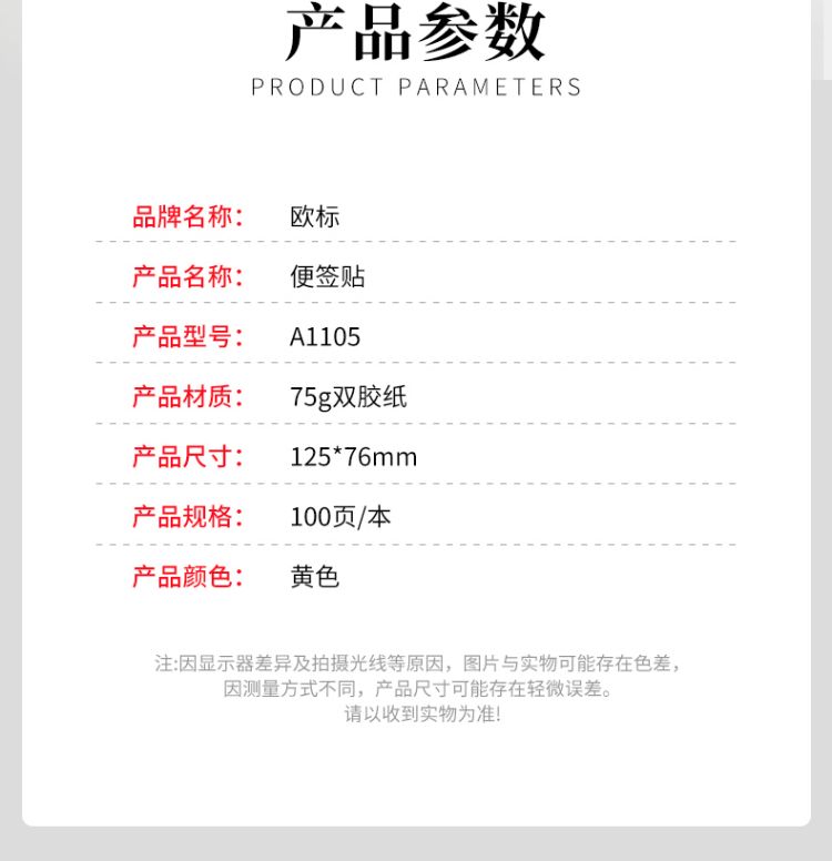 欧标 便签贴 A1105 125*76mm 100张 75g双胶纸 黄色