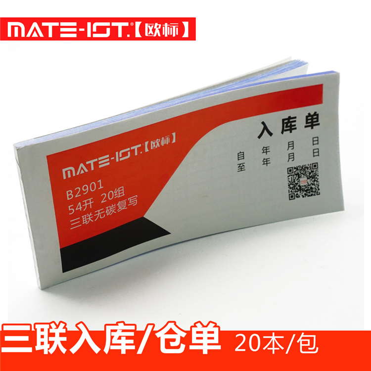 欧标 三联无碳复写入库单 B2901 54K 20组 白色规格:1本