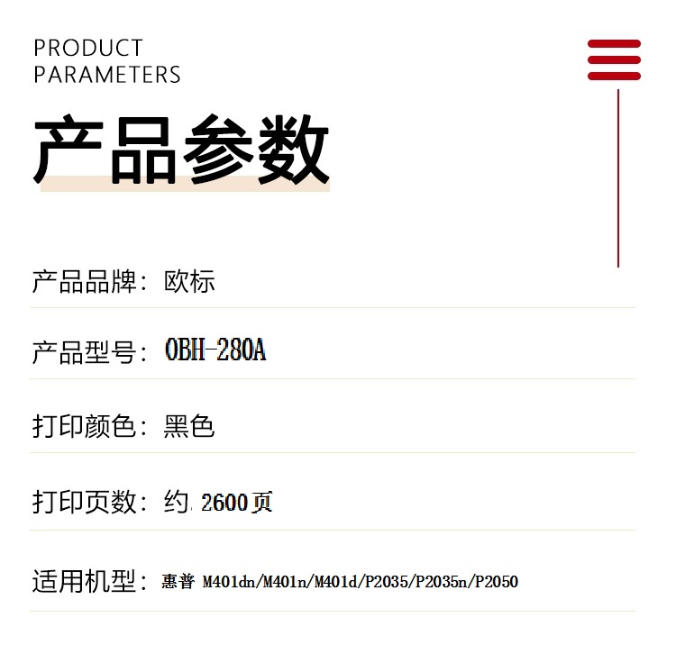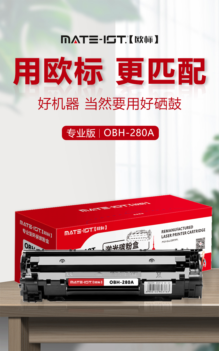 欧标 激光碳粉盒 OBH-280A 灌粉量140g 5%覆盖率打印页数2700页 黑度值1.46 HP 400/M401dn/M401d 黑色