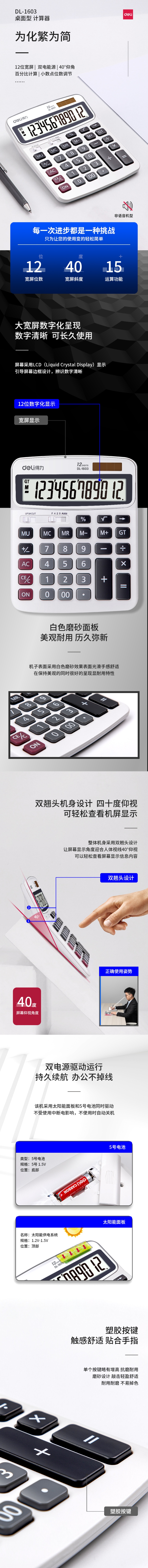得力 桌上型计算器 1603 12位 192x157x40mm 1/10/40 灰白