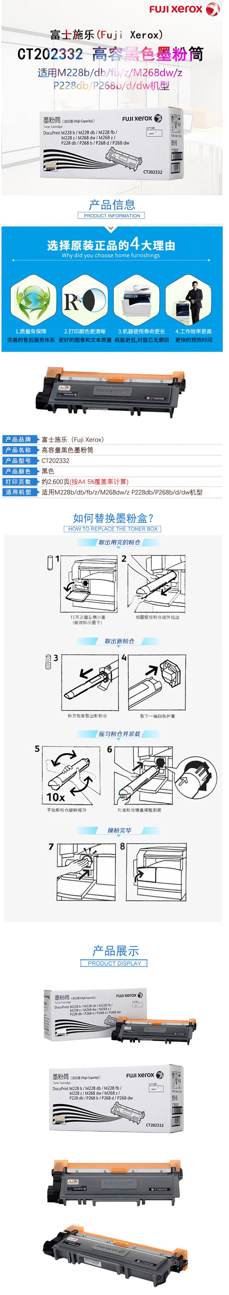 商品简介 适用于适用于DocuPrint M228/268/P228/268 大容量2600页
