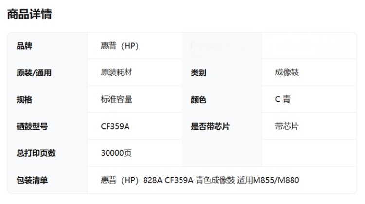 商品简介 成像鼓/30000页 适用于惠普 M855dn/xh M880z