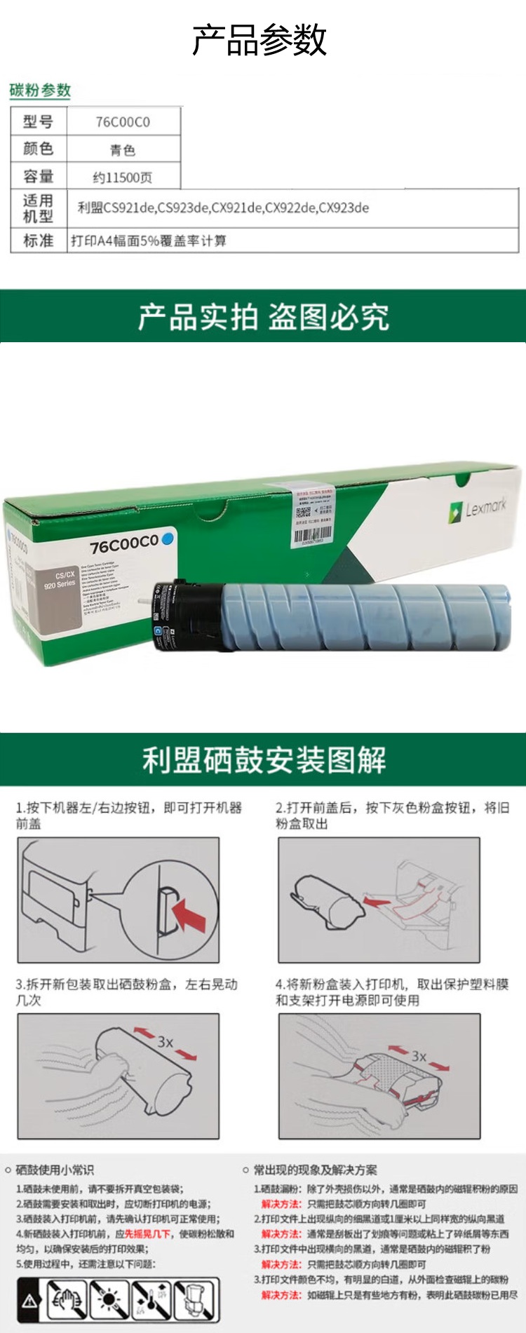 | 商品简介 | 青色碳粉盒适用于利盟CS921de/CS923de/CX921 | |