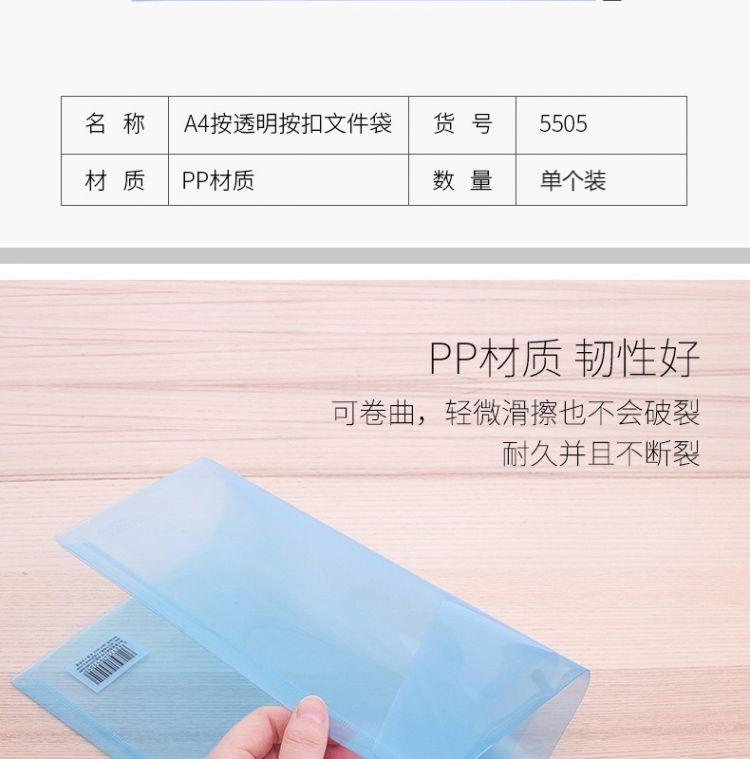 得力 按扣文件袋 5505 A4 横式 10/150/600 透明
