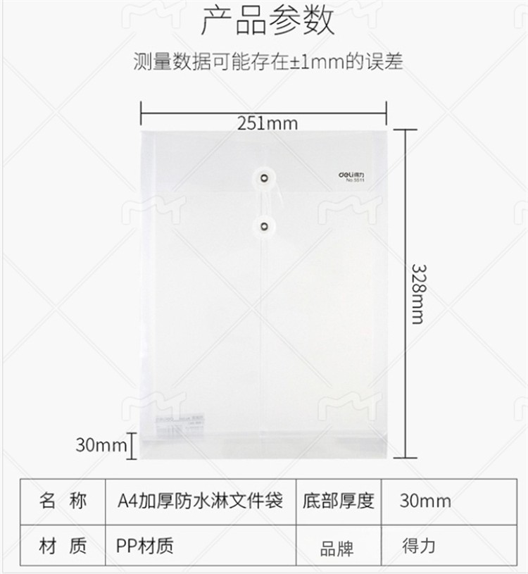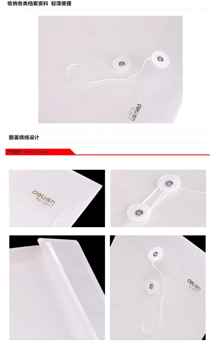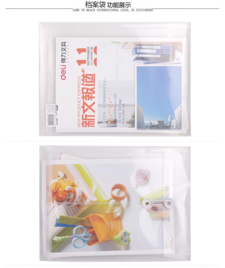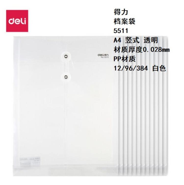 得力 按扣文件袋 5505 A4 横式 10/150/600 透明