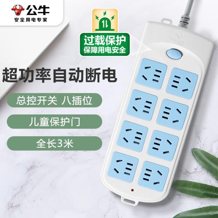 公牛 插排 GN-604 3m 8位 总控 2017年新国标 蓝白