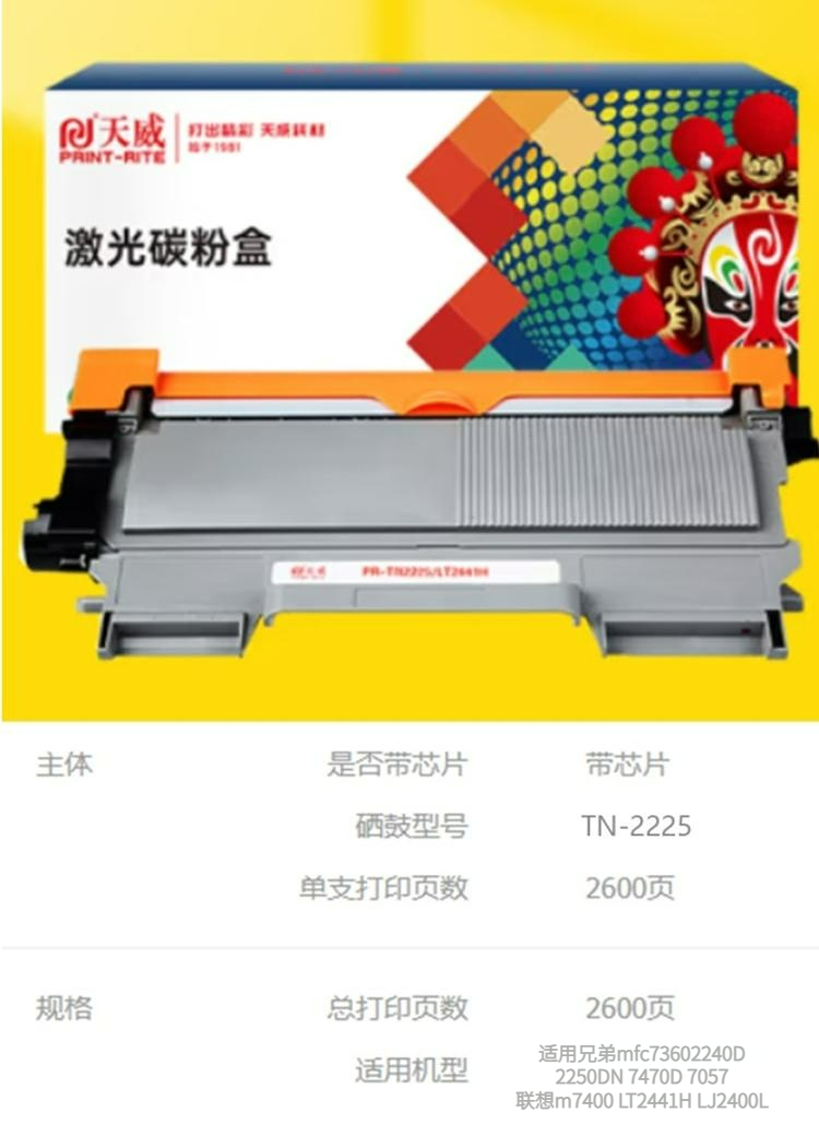 天威 粉盒 PR-BRO TN2225/LT2441H/LT2641HR 专业装(红包) 适用于BROTHER-TN2225/LENOVO-LT2441-黑粉盒 打印页数:2600页 黑色