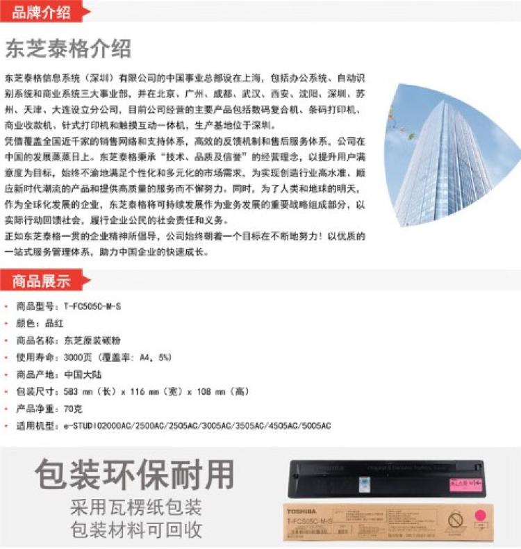 商品简介 3000页 小容量 70克 适用:东芝E2000AC/2500AC/2505AC/3005AC/3505AC 青色