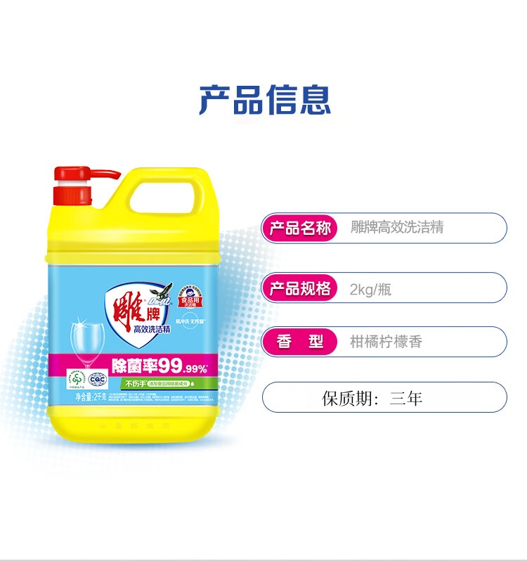 白猫洗洁精 清爽柠檬香 可洗果蔬2kg 透明