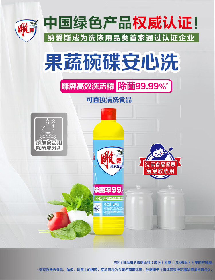 雕牌 高效洗洁精 500g 柠檬香