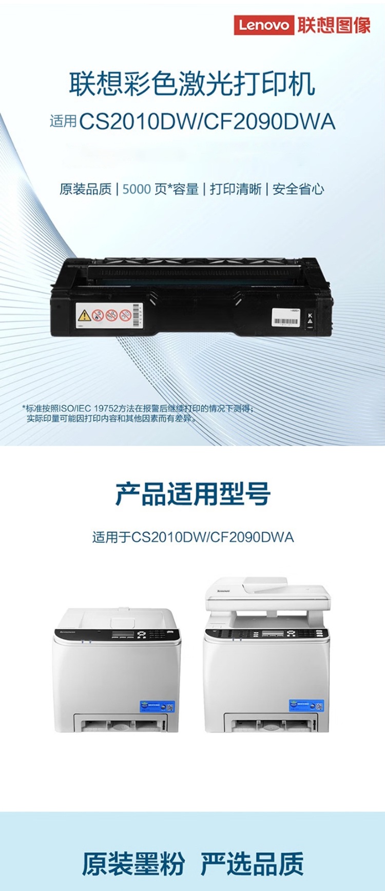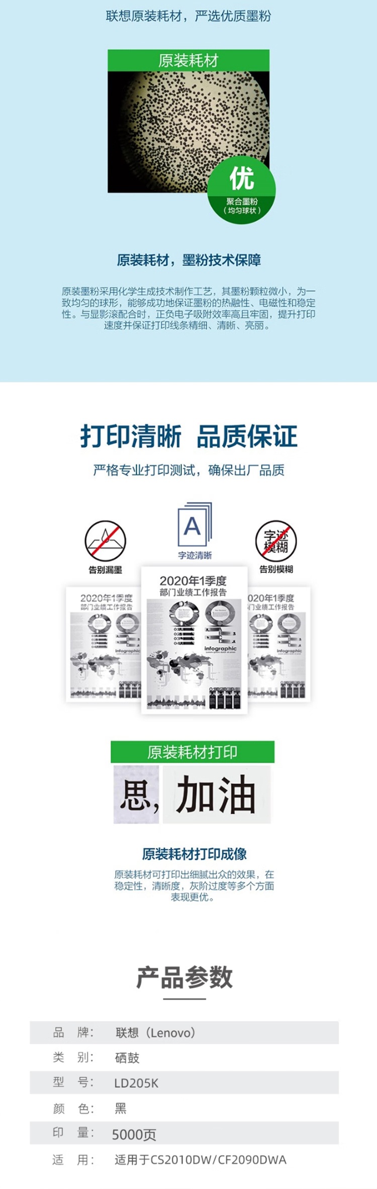 商品简介 打印量5000页|适用于联想原装CS2010DW CF2090DWA| 硒鼓|黑色