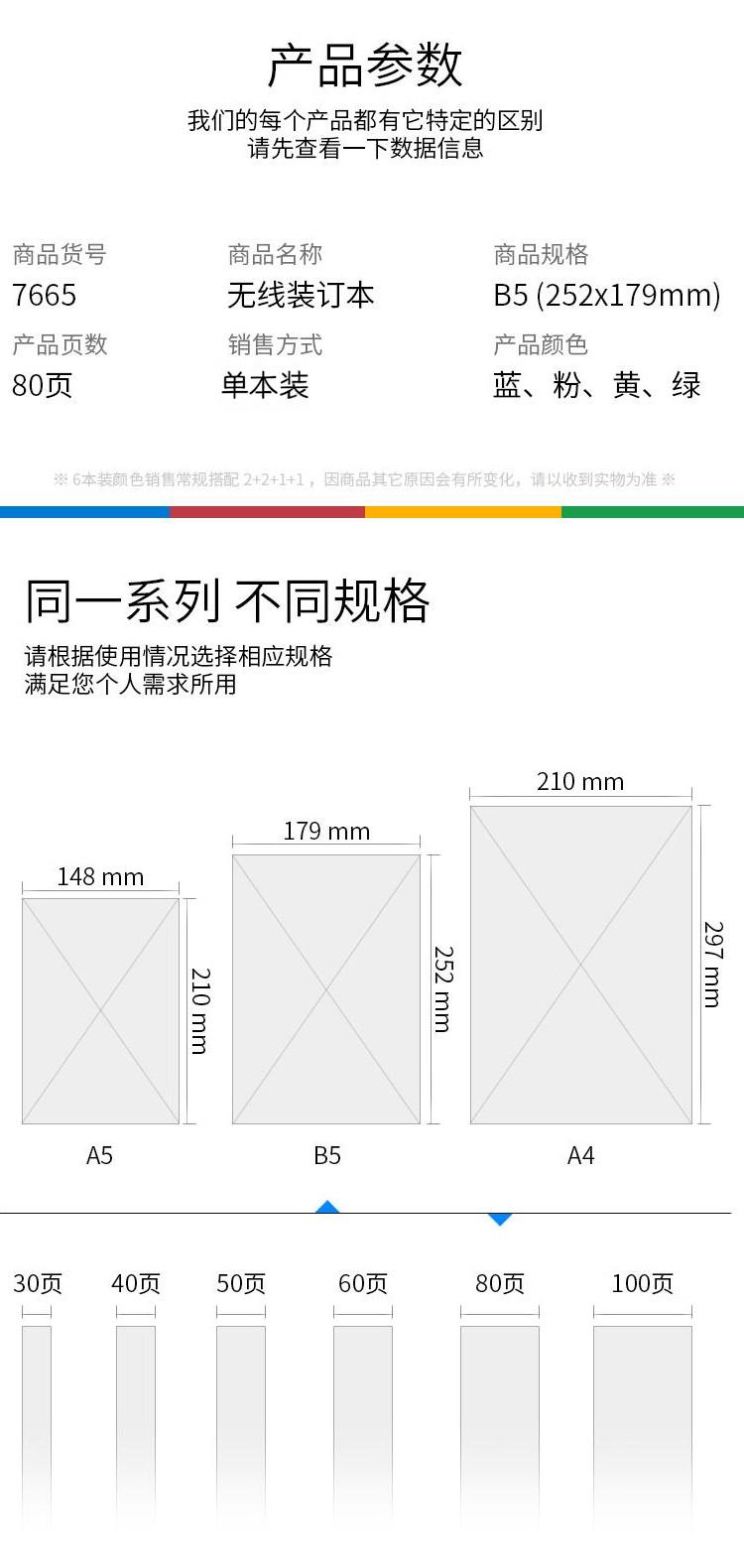 得力 装订本 7665 B5 80页 60g 239*169mm 混色