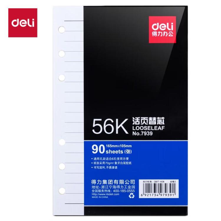 得力 活页替芯 7939 165*105mm 56K 90页 深蓝