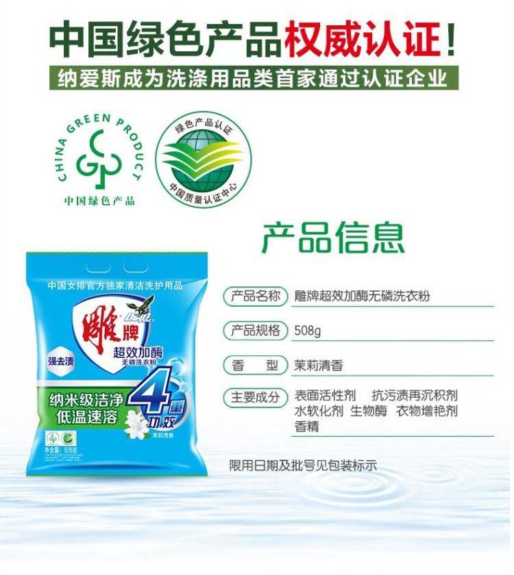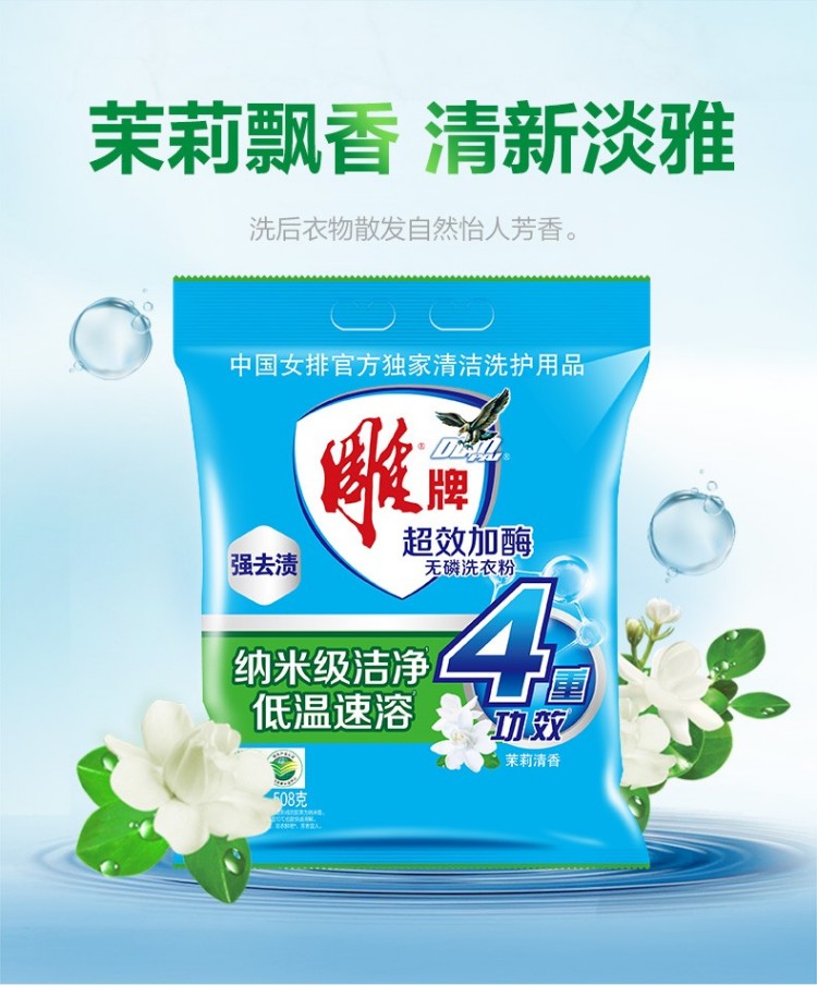 雕牌 超效加酶无磷洗衣粉 508g 清香茉莉