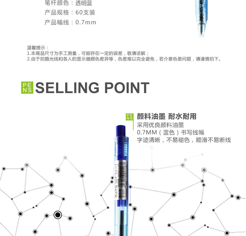 参数 0.7mm 蓝色芯