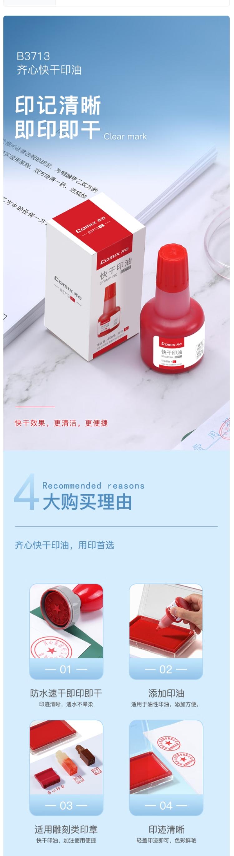 齐心 快干印油B3713 40ml 1/12/144颜色:红色、规格:快干40ML