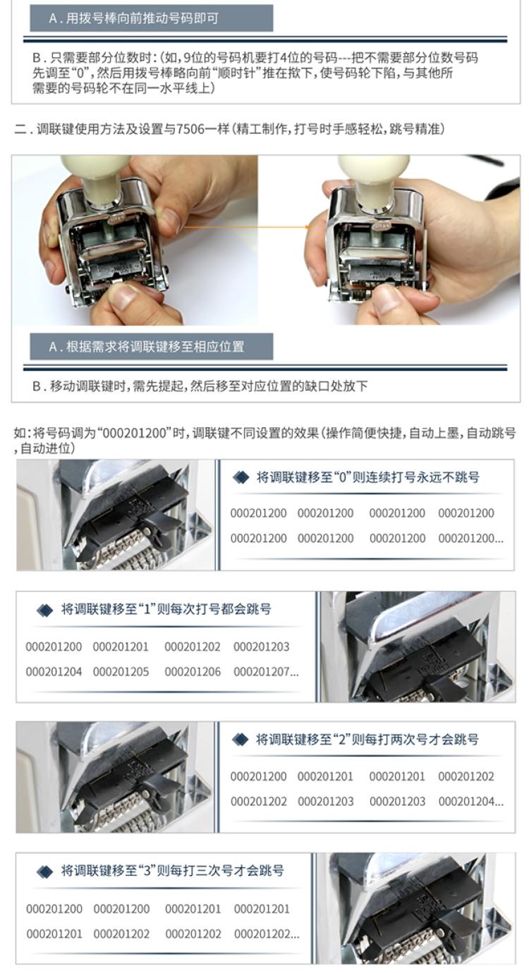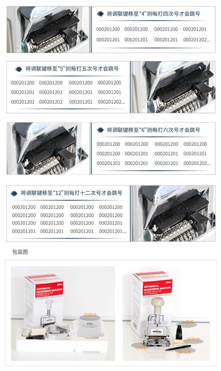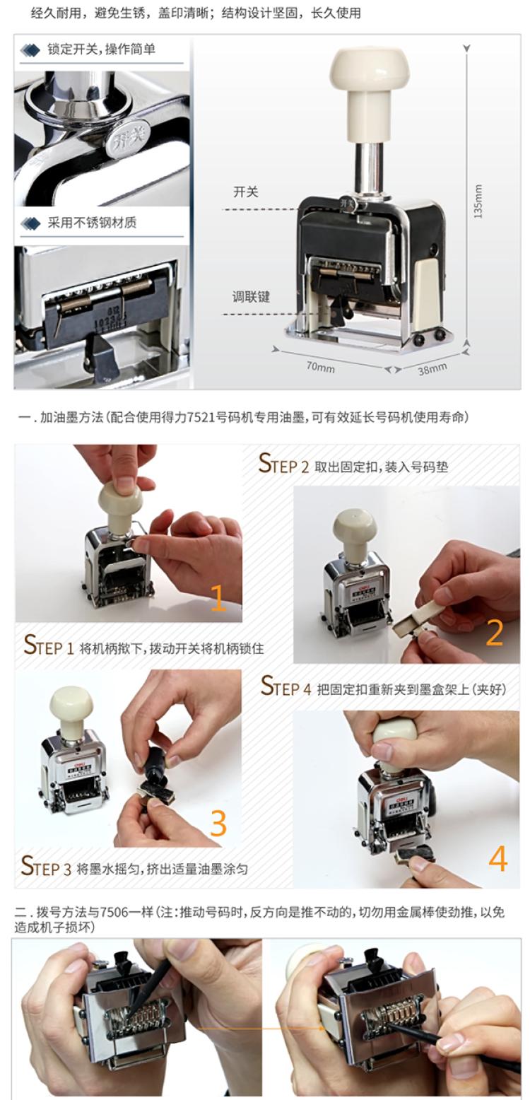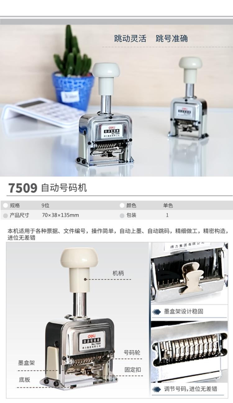 得力(deli)7508打码机自动号码机生产日期印章页码数字8位号码机带棉垫财务打号器页码机