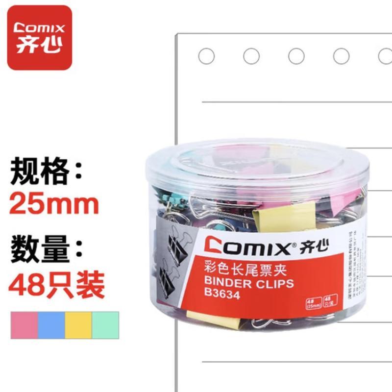 齐心 彩色易分类长尾票夹 B3634齐心 彩色长尾票价规格:B3632 2# 41mm 24只/筒