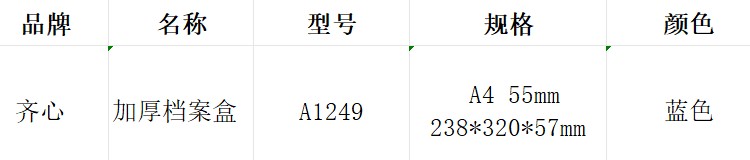 齐心 超省钱PP档案盒 A1249 A4 55mm 1/-/18 绯蓝颜色:蓝色、规格:55mm
