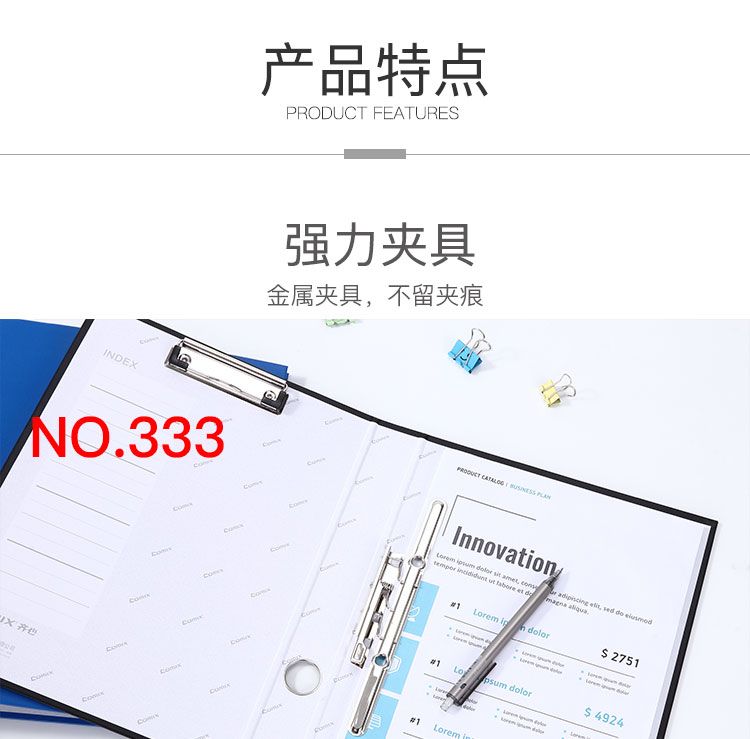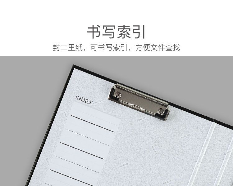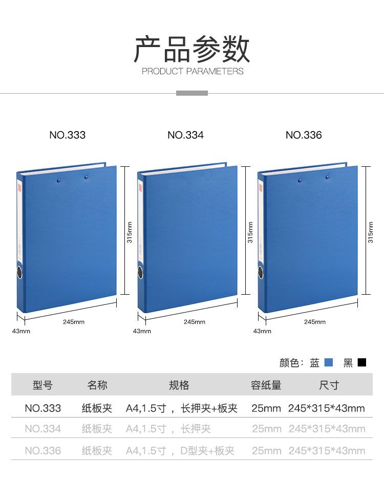 商品简介 尺寸245*315*43(mm)一夹两用(长押夹+板夹),采用一次性成型灰纸板,紧密厚实,持久不会变形。