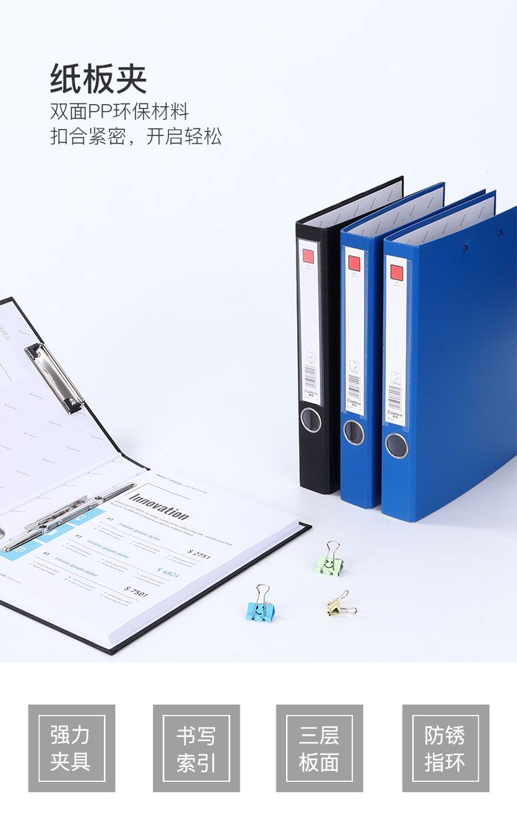 齐心 纸质长押夹+板夹文件夹 NO.333 A4 1.5寸 1/8/32 黑色