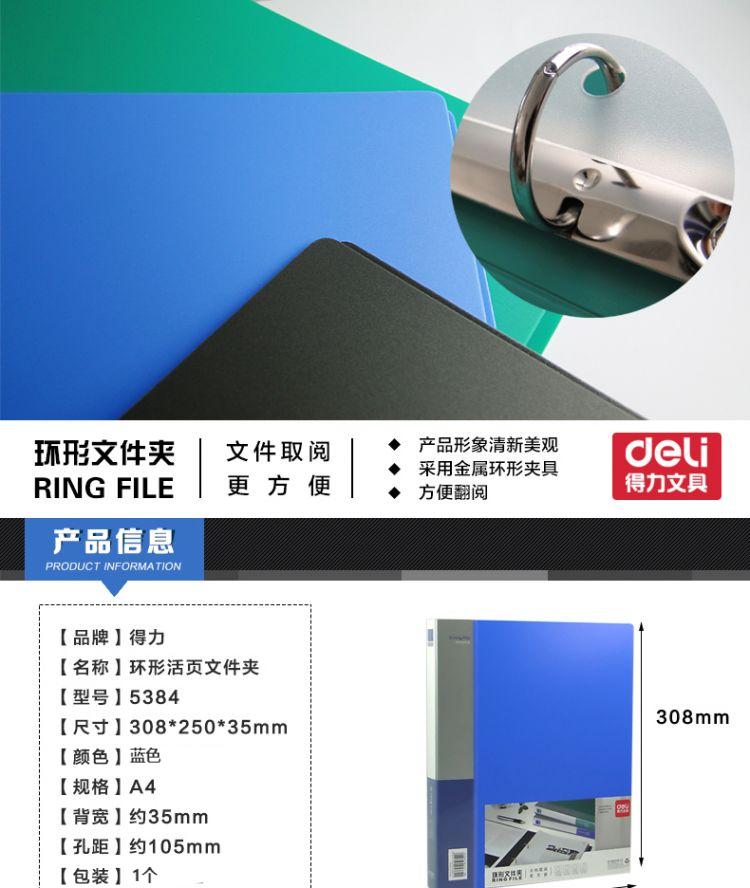 得力 O型三孔文件夹 5384 A4 蓝色