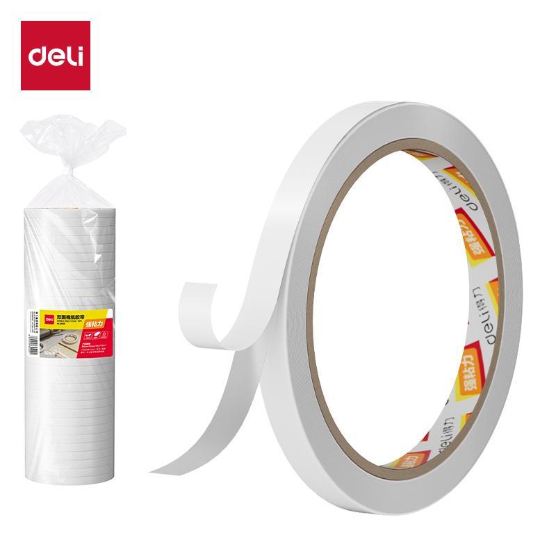 得力 棉纸双面胶带 30400 80um*9mm*10y 32卷/袋 12袋/箱 按卷销售 白色