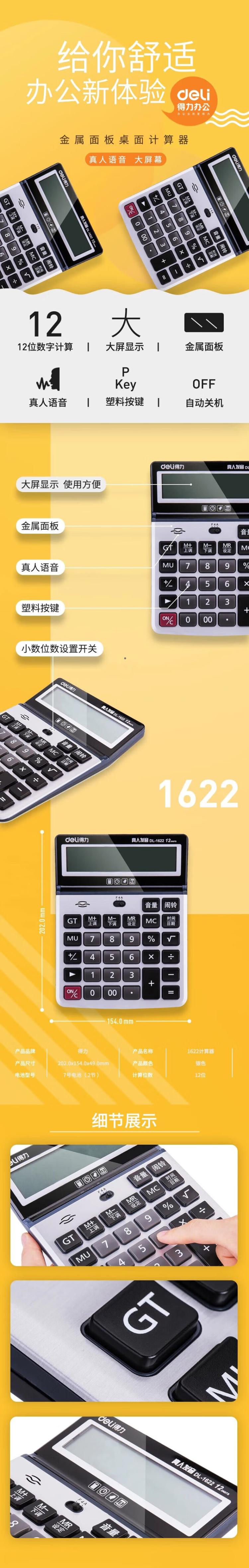 得力 语音型计算器 1622 12位 205x154x44mm 1/10/40 深蓝色