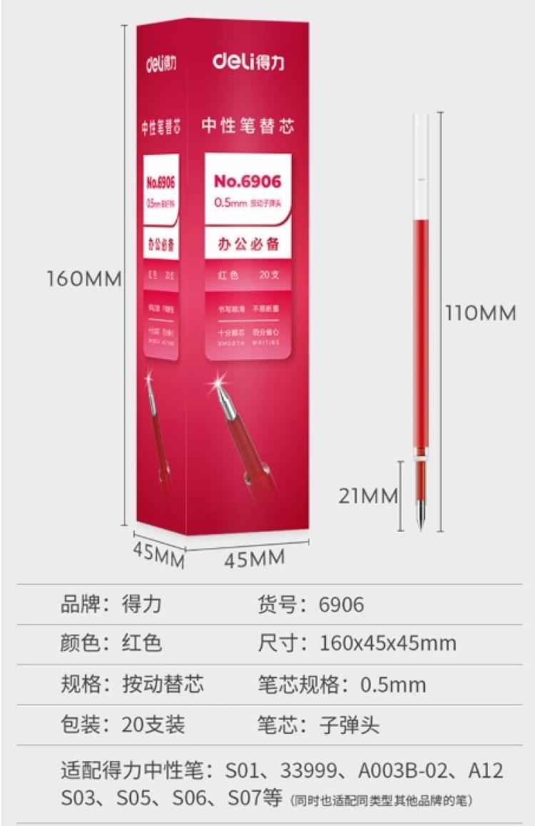 得力 中性笔芯 6906 0.5mm 红色