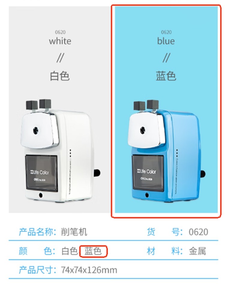 得力 削笔机 0620 驱动方式:手动 金属外壳办公款 126*74*74mm 蓝色