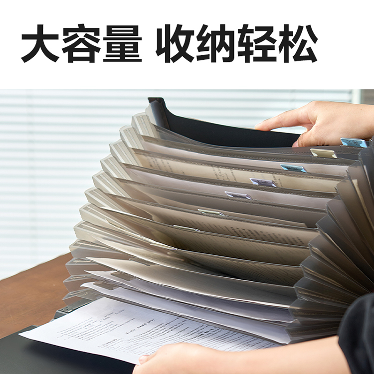 得力 风琴包 5558 A4 12格风琴包 蓝白 黑白 绿白 红白 1/12/48 混色