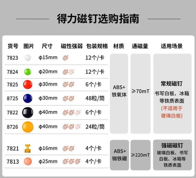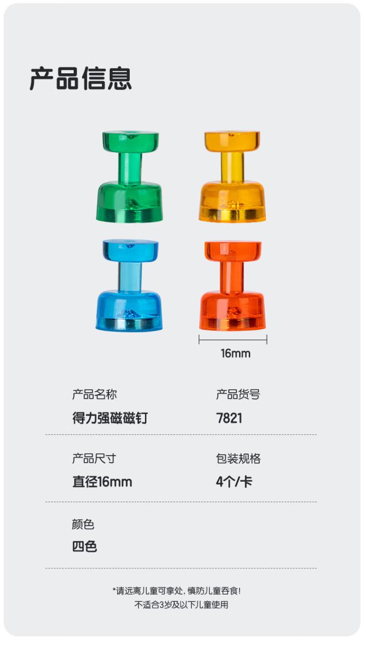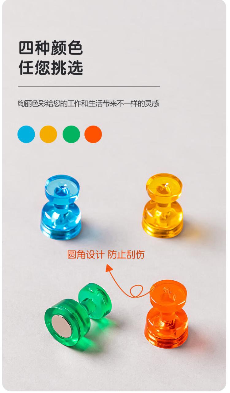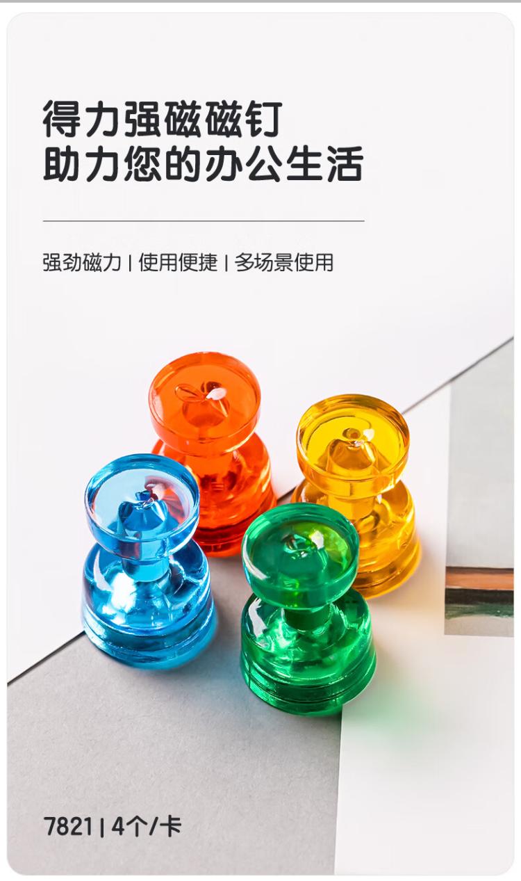 得力 磁钉 7821 φ17*22mm 4粒/卡 强磁 混色