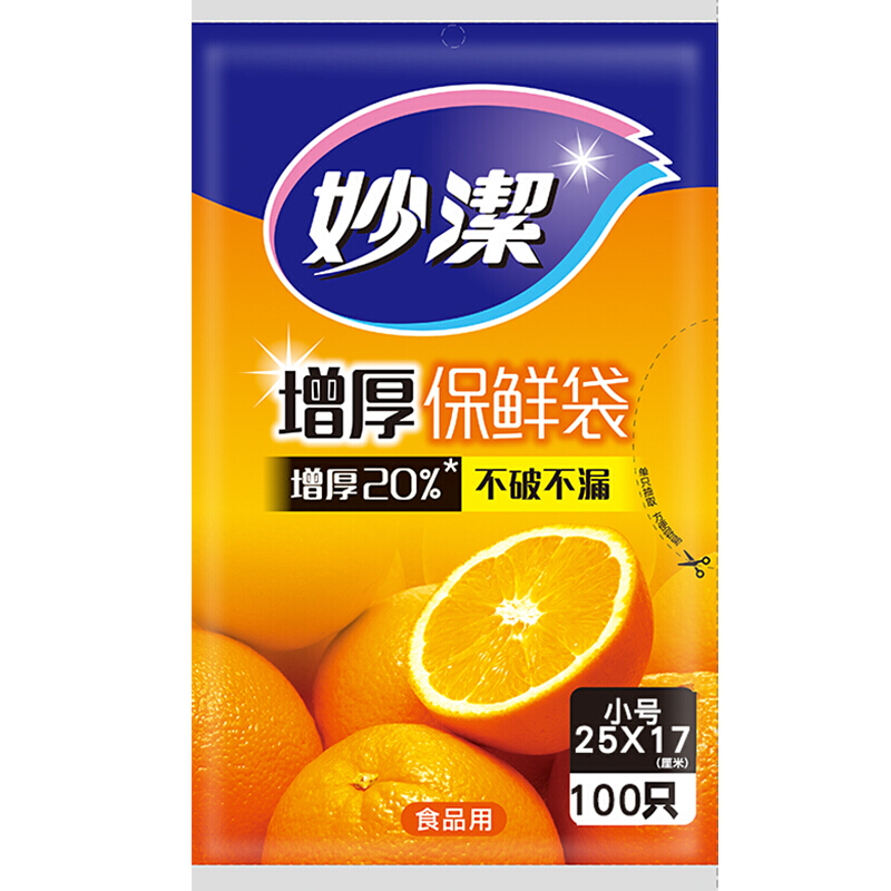 妙洁 厚实抽取式保鲜袋 小号100只装