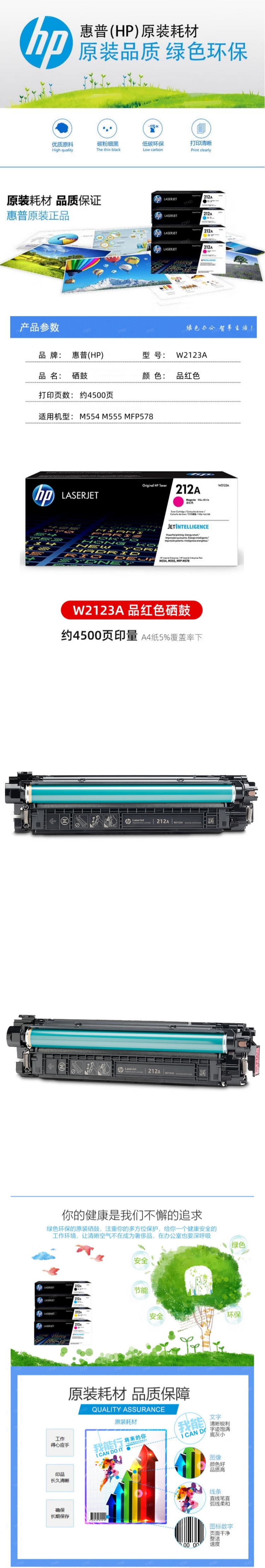 惠普 HP W2123A 硒鼓 品红色 约4500页 适用M554 M555 MFP578 计价单位:支