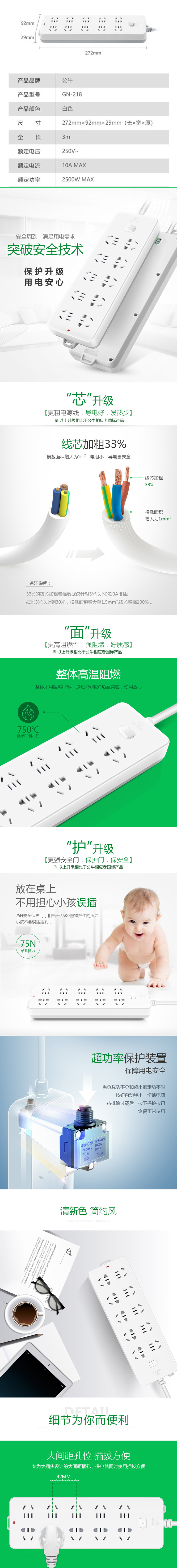 公牛桌洞插座接线板插排插线板插板智能1.8米双USB口