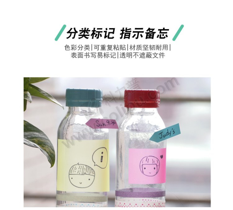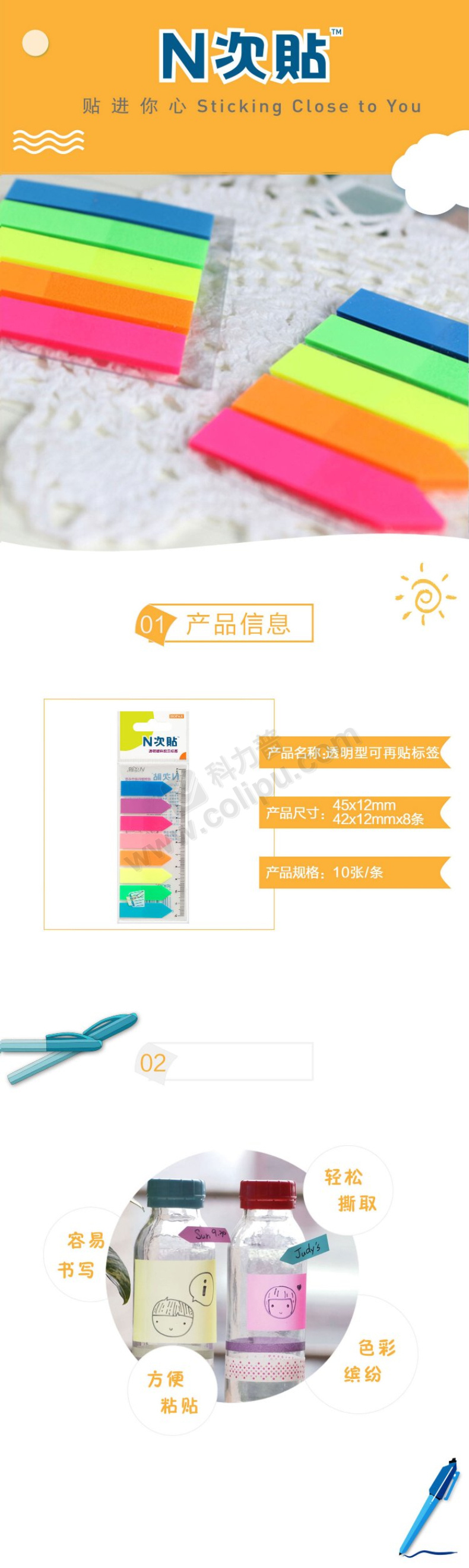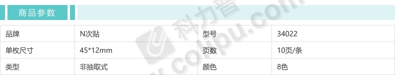 N次贴 Stick 'N 透明塑料 指示标签 34022 42*12mm*8 (荧光8色) 10页/条 8条/包