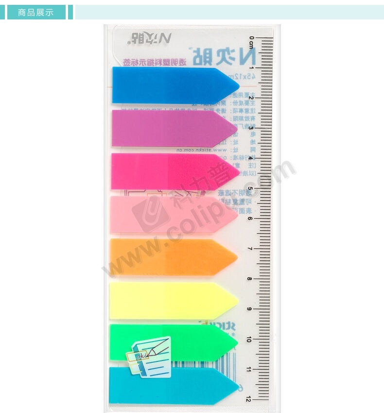 N次贴 Stick 'N 透明塑料 指示标签 34013 45*12mm*5 (荧光5色) 20页/条 5条/包