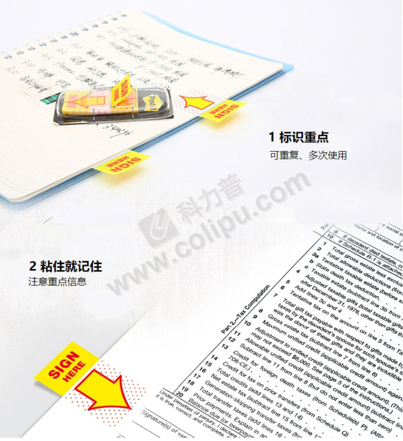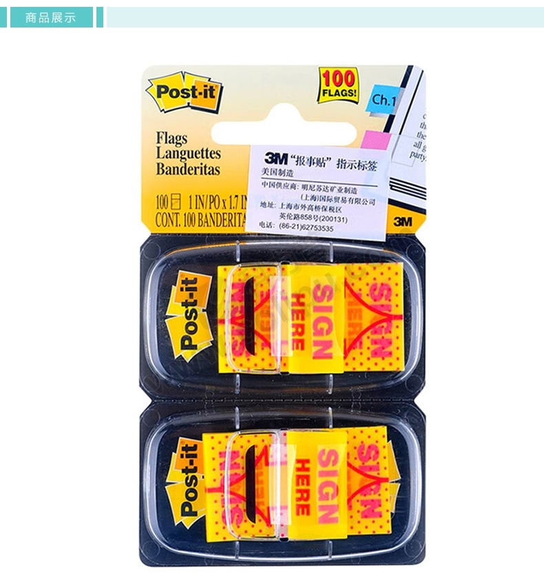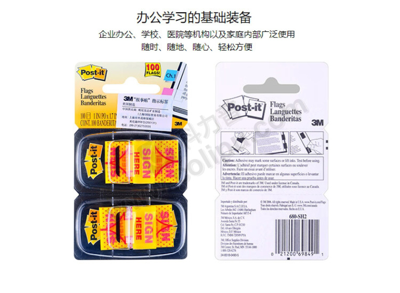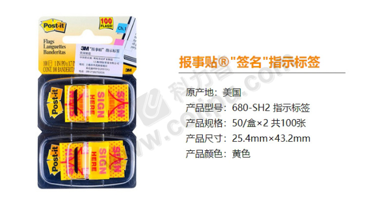 3M “签名”塑料指示标签便利贴 680-SH2 25.4*43.2mm*2 (黄色) 50页/条 2条/卡