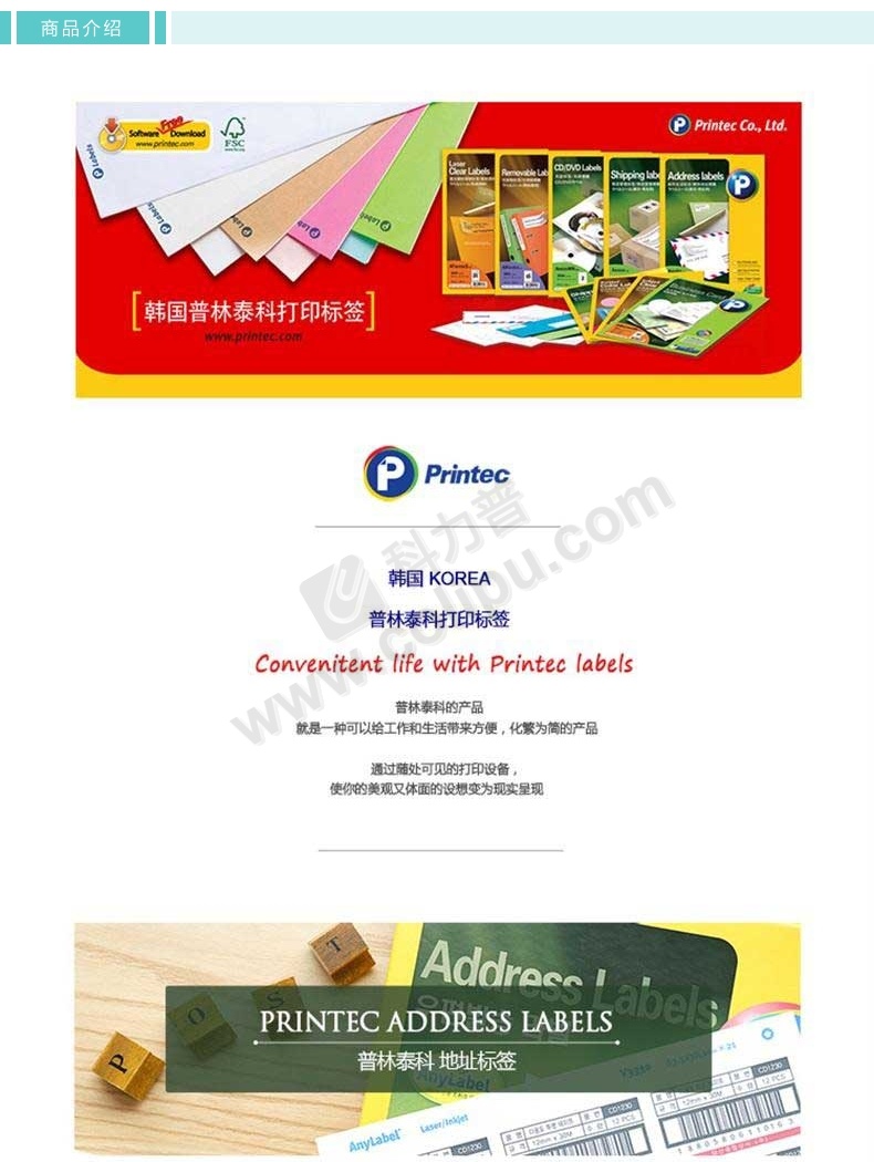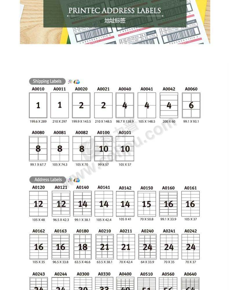 普林泰科 printec 地址打印标签 A0210-100 21分 63.5*38.1mm 100页/包