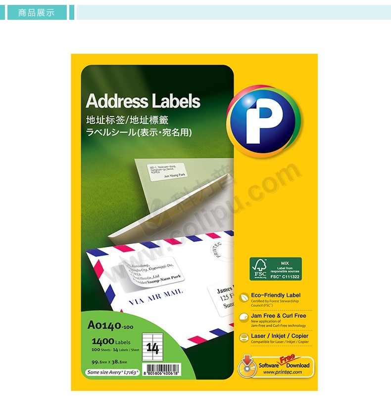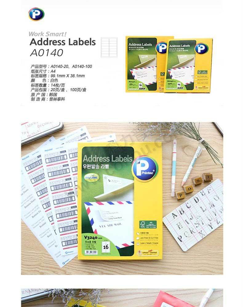 普林泰科 printec 地址打印标签 A0140-100 14分 99.1*38.1mm 100页/包