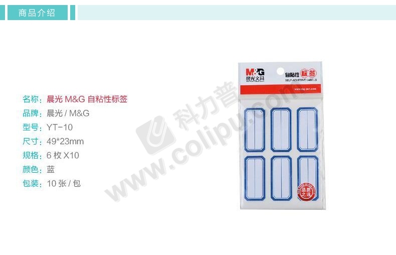 晨光 M&G 不干胶标签 YT-10 49×23mm (蓝框横线) 6枚/张 10张/包 (二等分)