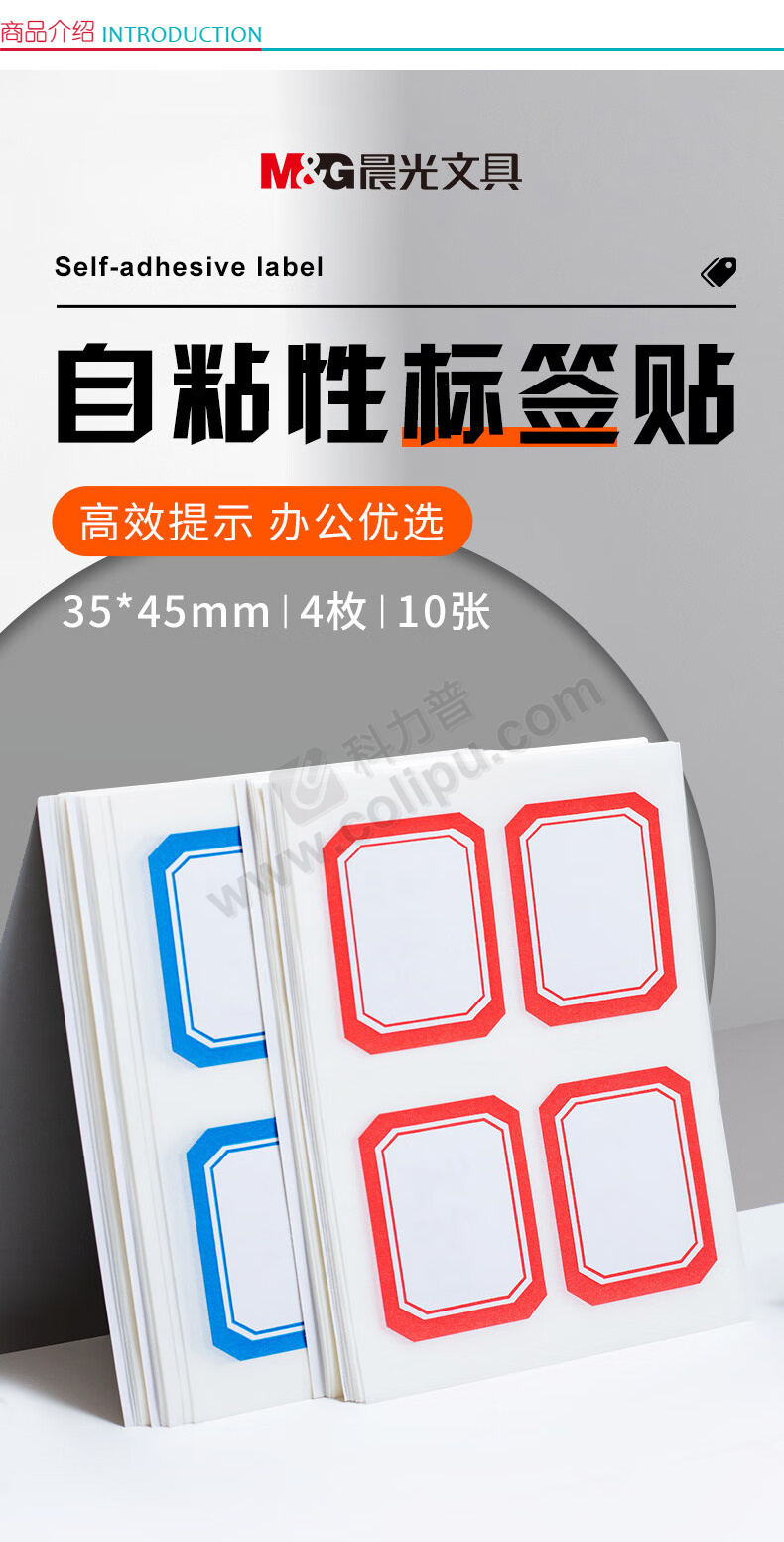 晨光 M&G 自粘性标签 YT-07 4枚*10 45*35mm (红色) 10张/包