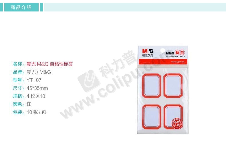 晨光 M&G 不干胶标签 YT-07 45×35mm (红框白底) 4枚/张 10张/包