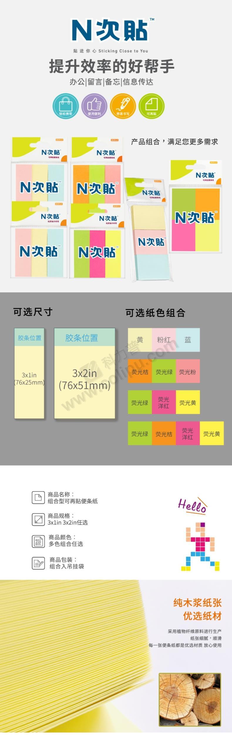 齐心 办公必备系列异形便条纸 D6014 1/92/552 混色